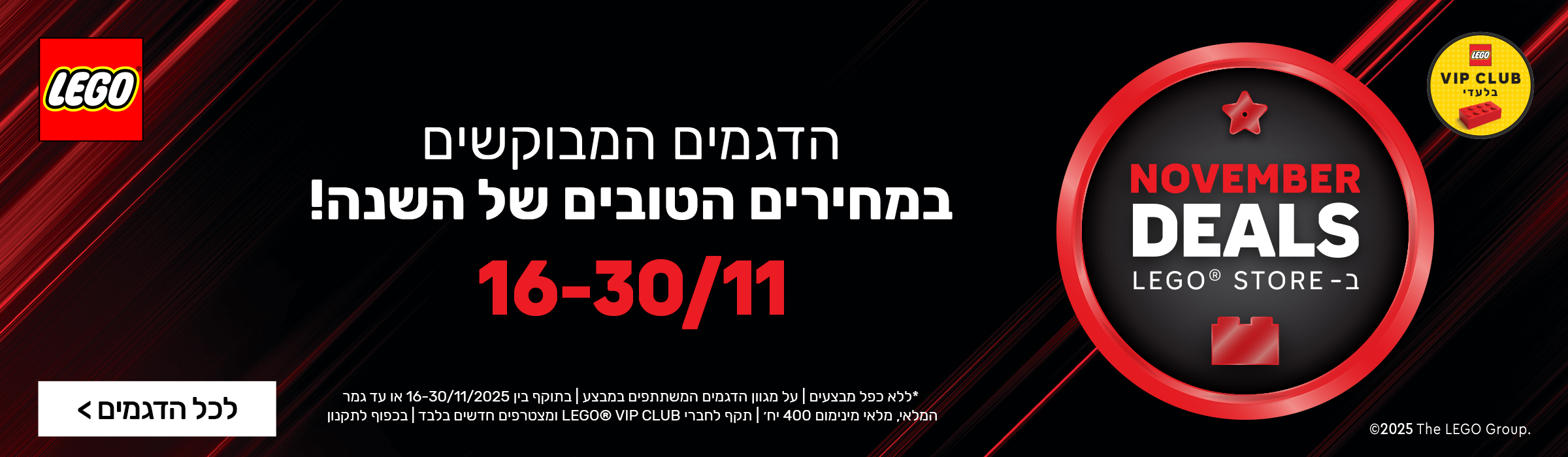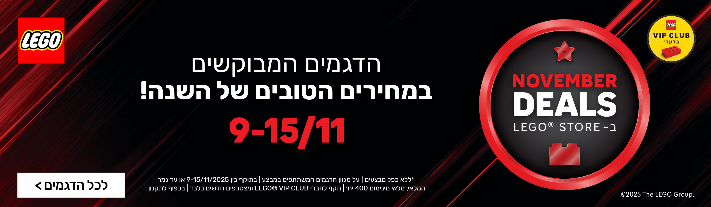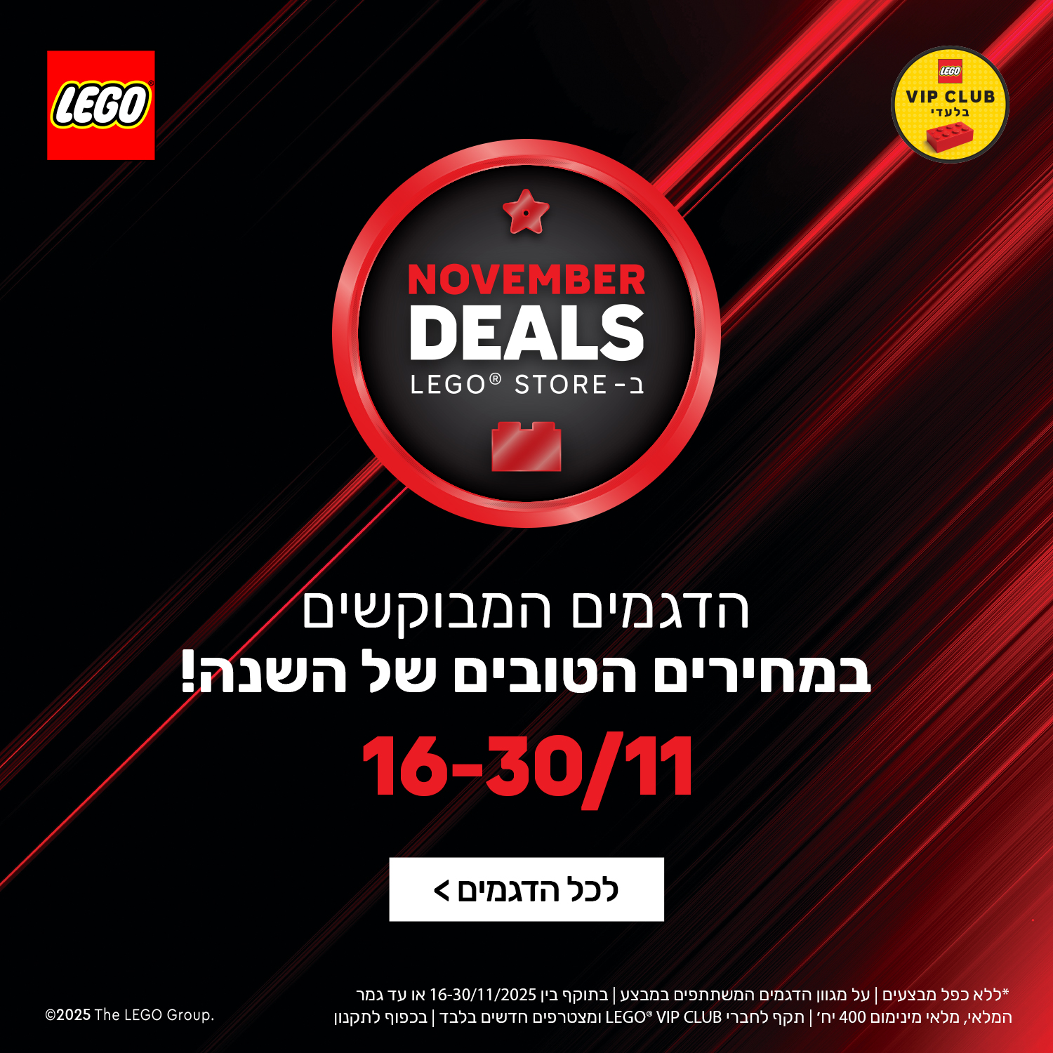 *דגם המתנה 40774 | ללא כפל מבצעים והטבות | בתוקף 28/10-30/11/2025 או עד גמר המלאי, מלאי מינימום 5,000 יח׳ בכל רחבי הרשת | מתנה 1 בעסקה | תקף לחברי LEGO® VIP CLUB ומצטרפים חדשים בלבד | בכפוף לתקנון