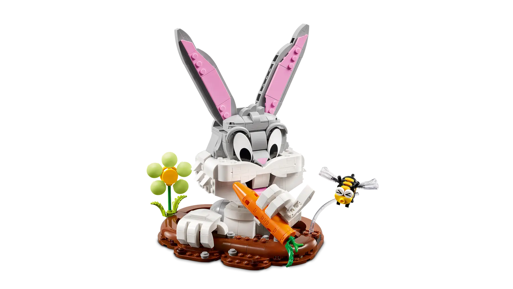 דגם זה לבנייה ותצוגה של LEGO הוא רעיון נפלא לבנייה מרגשת לילדים, ילדות וכל חובבי Looney Tunes בגיל 14 ומעלה. ילדות וילדים משחזרים את פסל הראש של הארנג האהוב “באגס באני”, הדמות המקסימה מ-Loony Tunes ומציגים אותה על המעמד הניתן לבנייה המשווה לבאגס מראה כאילו הוא הרגע צץ מהמחילה שלו. להענקת אפילו עוד יותר אופי לדמותו הכיפית של באגס באני, בנאיות ובנאי LEGO צעירים יכולים להזיז את אוזניו, ראשו, זרועותיו ואצבעותיו המתכווננים. הם ישלימו את הבנייה על ידי הוספת קישוטים עונתיים של דבורה עם פנים חמודות ופרח אביבי.