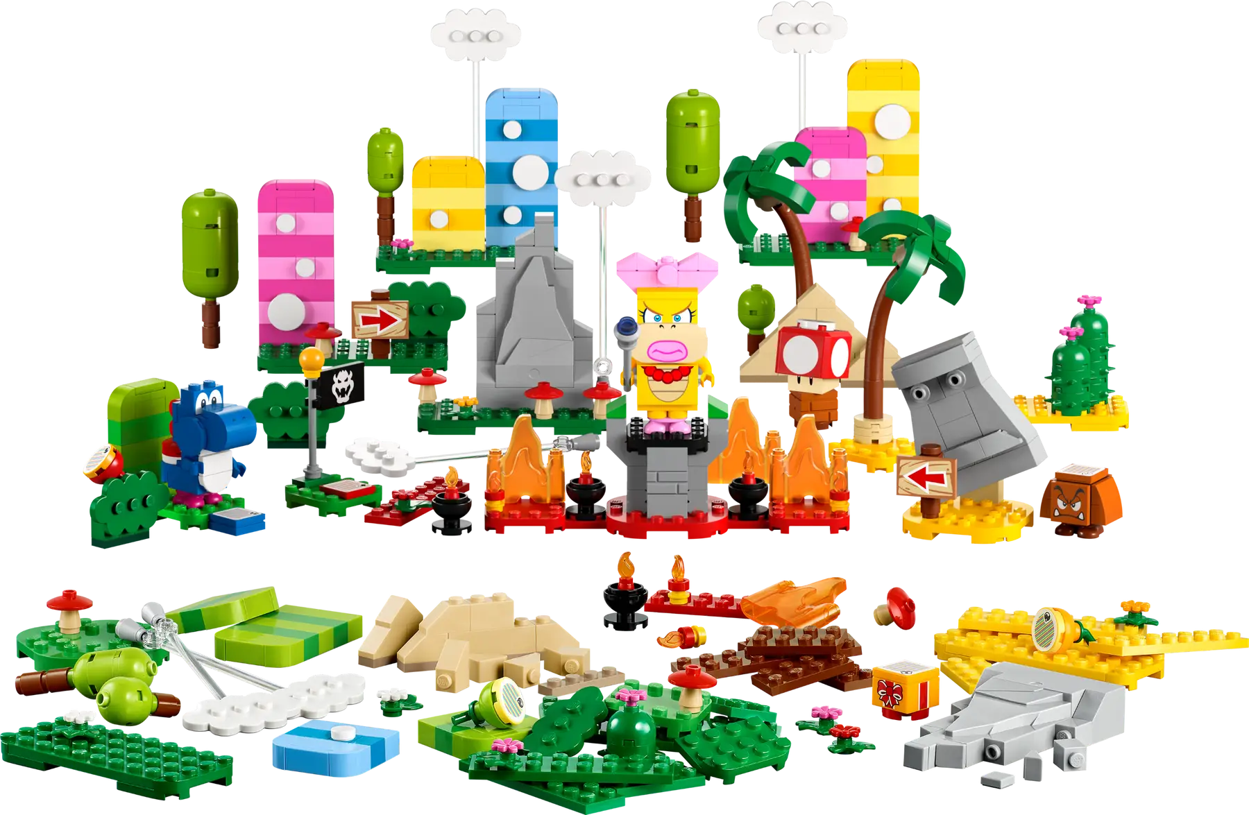 הוסיפו עוד פרטים ליקום LEGO® Super Mario™ עם ערכת ארגז הכלים ליצירה! שחזרו שלבים של דשא, מדבר לבּה עם הרים, עננים, עצים, להבות, דגל צ‘קפּויינט ועוד. שלבו הרכבות ורכיבי LEGO אלה עם מסלולי בסיס וערכות הרחבה או השתמשו בהם לתצוגה עם הדמויות של ונדי, יושי כחול וגומבּה!