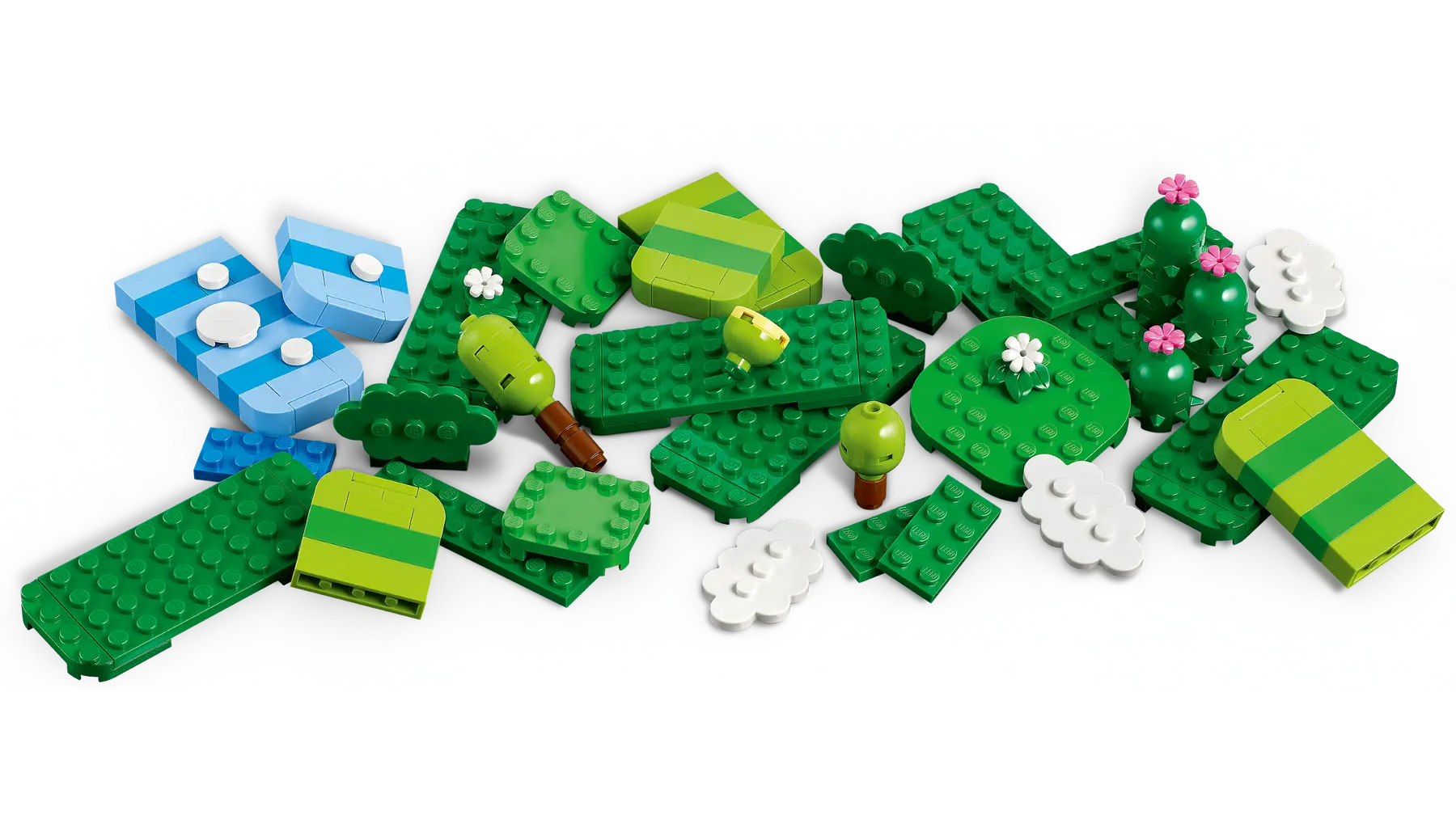 הערכה כוללת עצים הניתנים להרכבה, פרחים, הרים, פטריות, פירמידות, דגל ועוד, כדי לשחזר את המראה של שלבי הדשא, המדבר והלבה של ™Super Mario.
