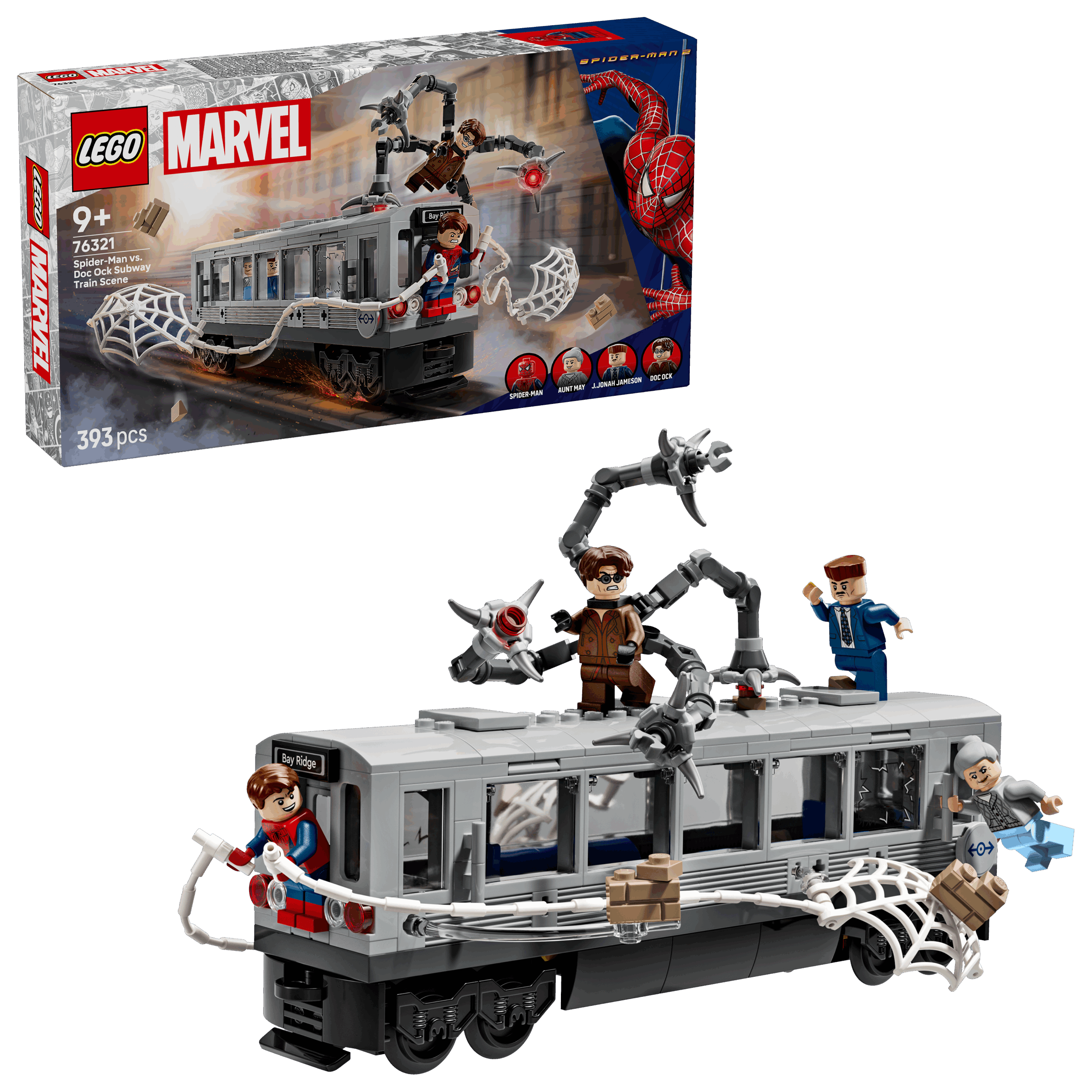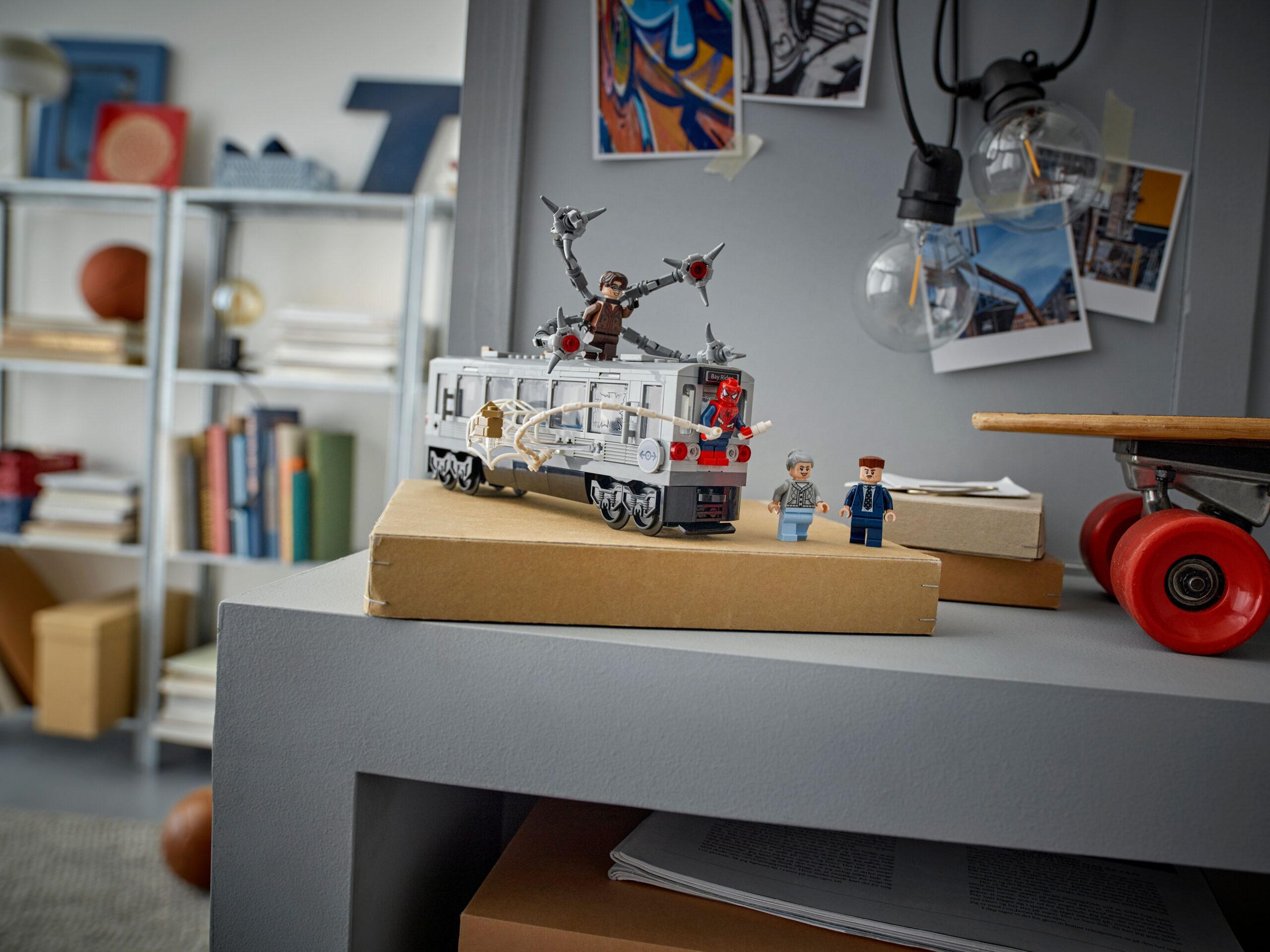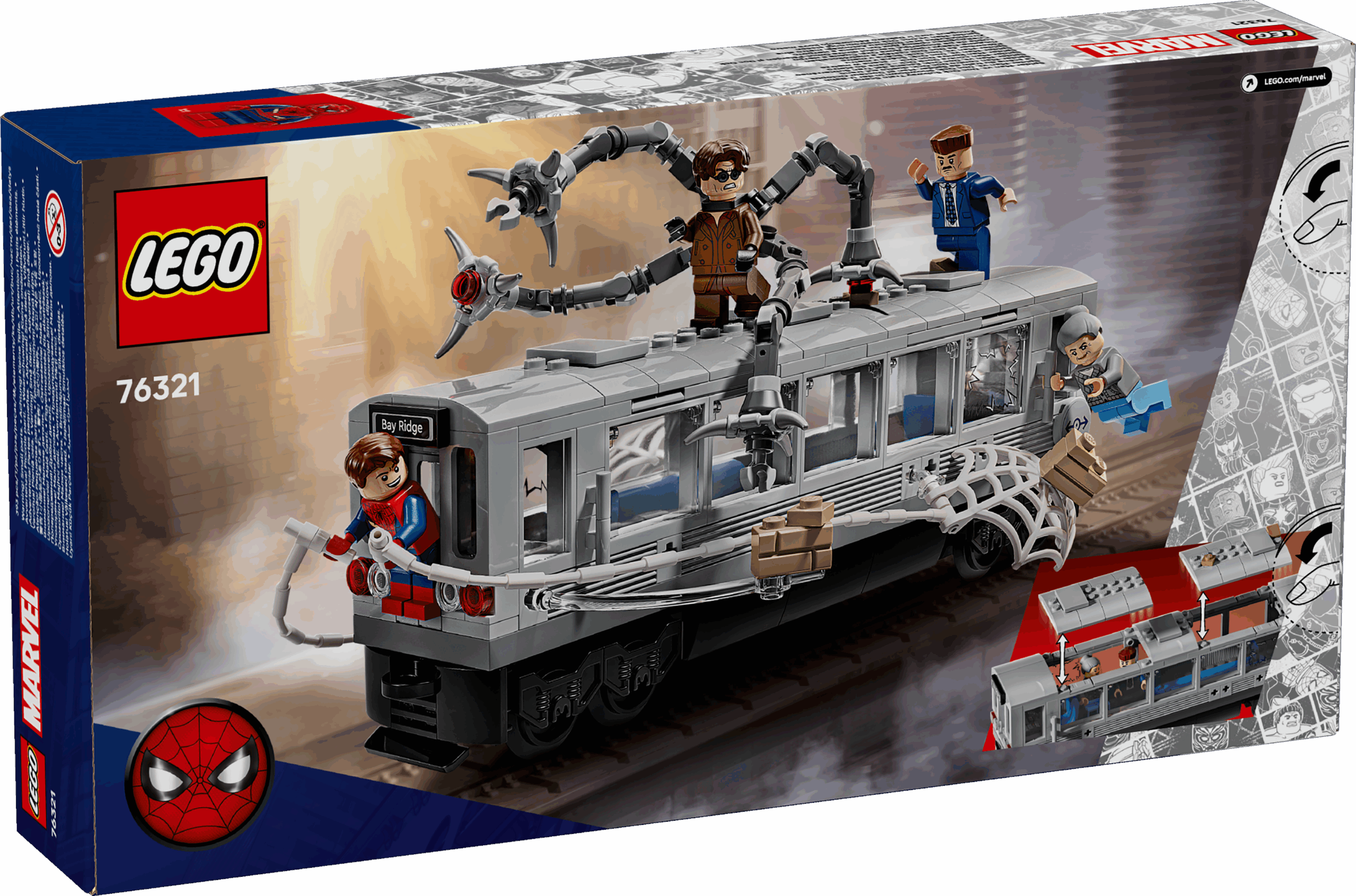 דגם בנייה של רכבת תחתית עם גיבור-העל האהוב מבוסס על סצנה מהסרט האיקוני “ספיידרמן 2” של אולפני מארוול. הדגם מגיע עם 4 מיני-דמויות: ג’יי ג’ונה ג’יימסון, דודה מיי, ספיידרמן ודוק אוק. המיני-דמות של ספיידרמן מצוידת עם ראשים מתחלפים – אחד עם מסכה והשני ללא מסכה – ורשת עכביש גדולה שאפשר לחבר לרכבת. המיני-דמות של דוק אוק מאובזרת עם 4 זרועות תמנון עם חיבורי מפרקים: 2 זרועות עם אלמנטים של ‘קרן לייזר’ ו-2 זרועות עם מהדקי חיבור לרכבת. דרך הגג המתרומם אפשר לקבל גישה לחלל הפנים של הרכבת, הכולל מקום ישיבה למיני-דמות של נוסע.