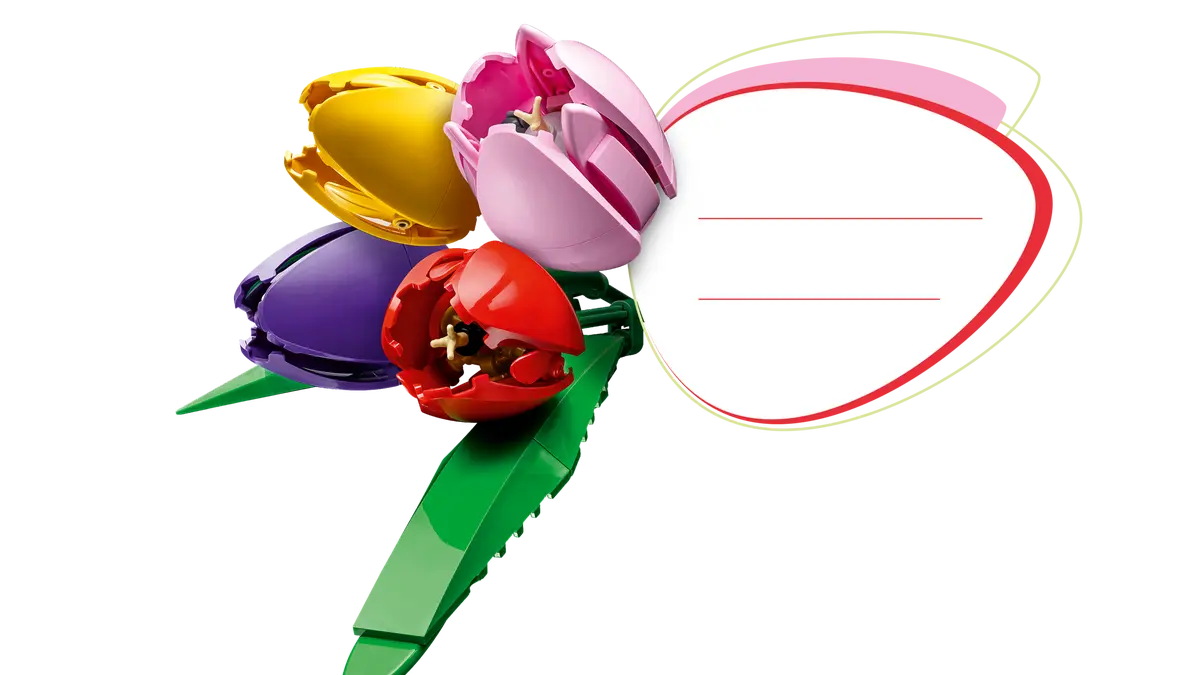 הרגישו את פריחת היצירתיות תוך כדי יצירת זר צבעונים בגוונים שונים של LEGO®. בנו כל פרח בנפרד והתפעלו מהפרטים והצבעים האותנטיים – תגלו ניצנים בצבע ירוק עז, פרחי צבעונים סגולים במצב סגור, וכן צבעונים פתוחים לגמרי בצבע אדום, צהוב וורוד, וגם עלים ירוקים וגבעולים מתכווננים לעיצוב בהתאמה אישית. בתום הבנייה הציגו את הזר בגאווה כפריט עיצוב פרחים.
